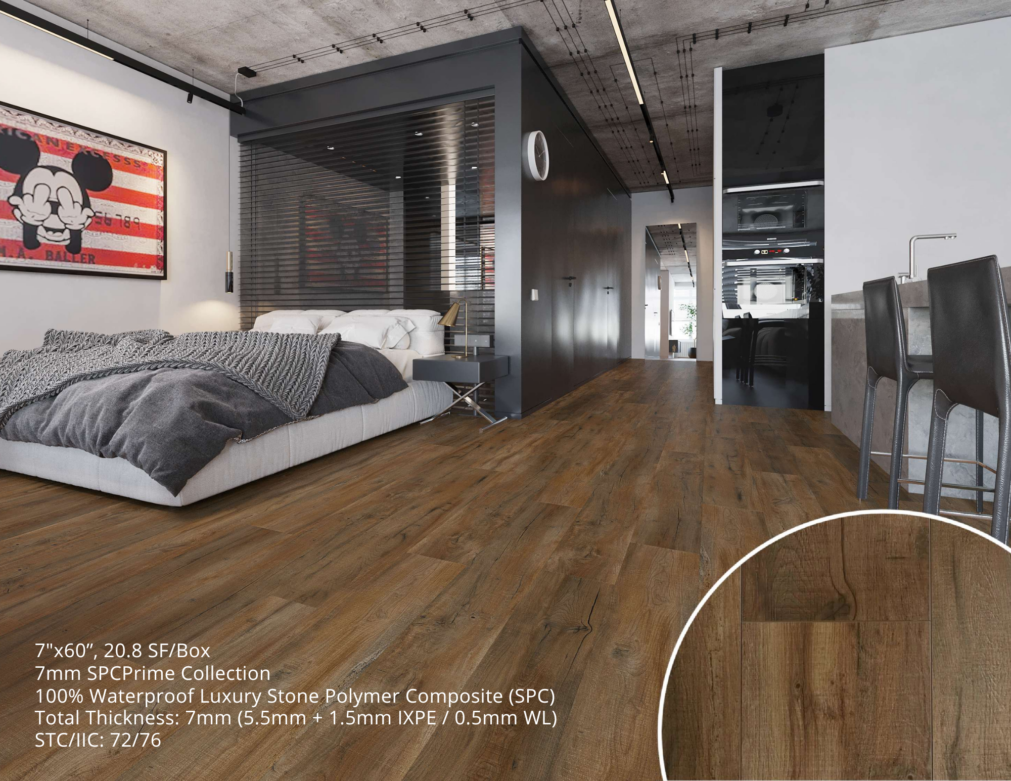 7mm SPC Waterproof Vinyl Flooring - 7" x 60" x 7mm