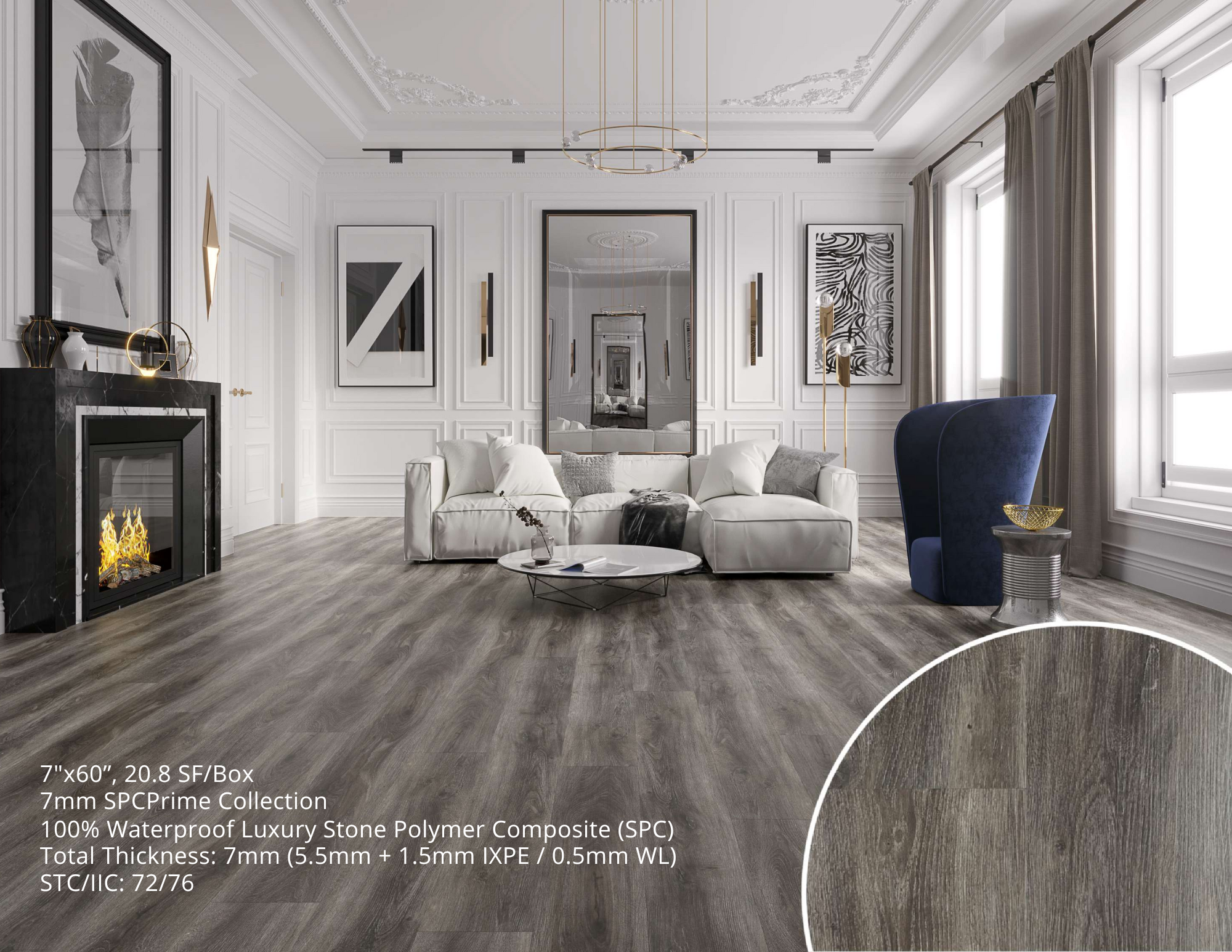 7mm SPC Waterproof Vinyl Flooring - 7" x 60" x 7mm