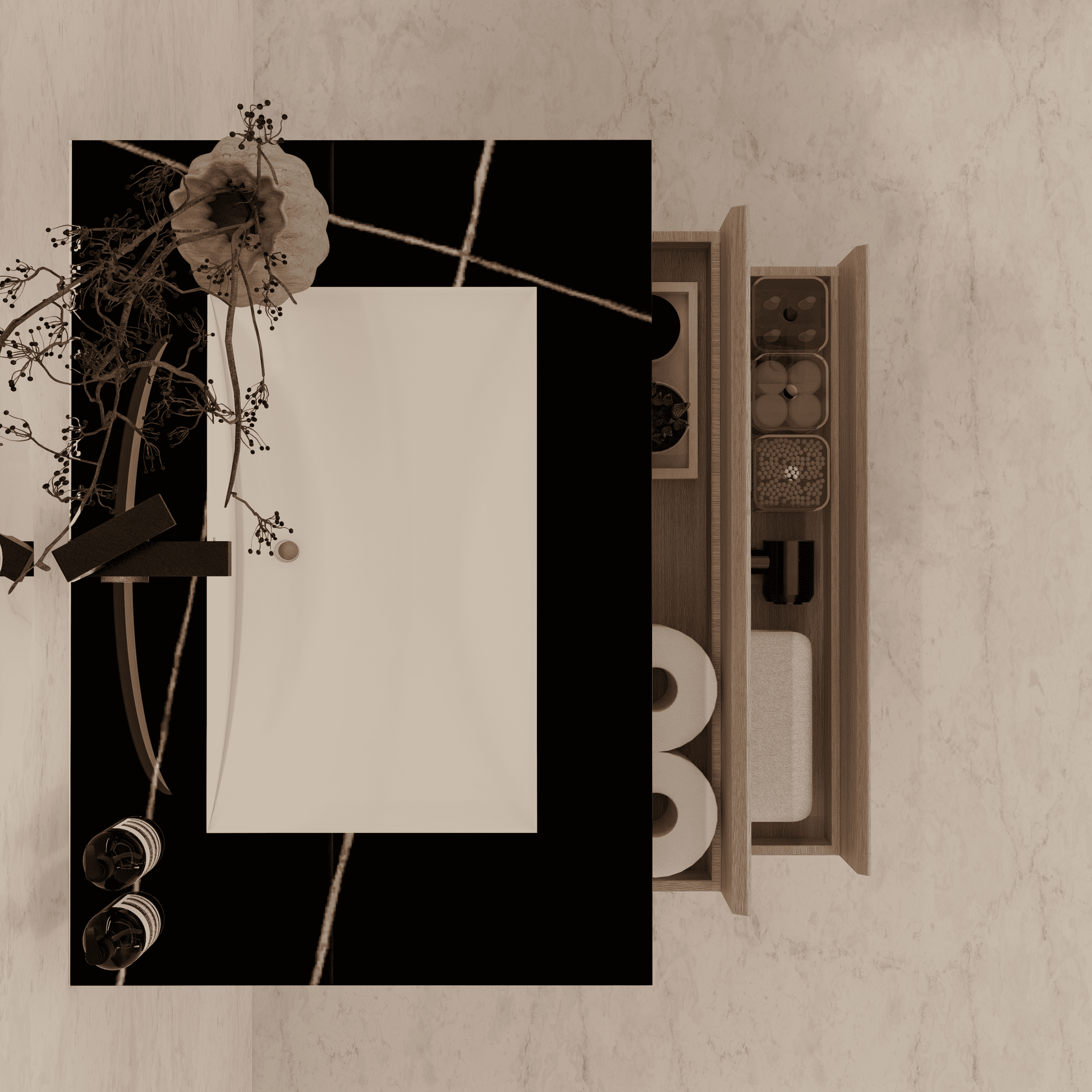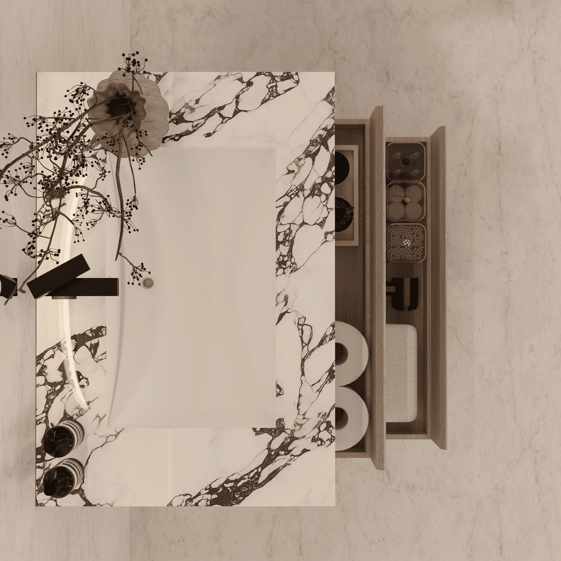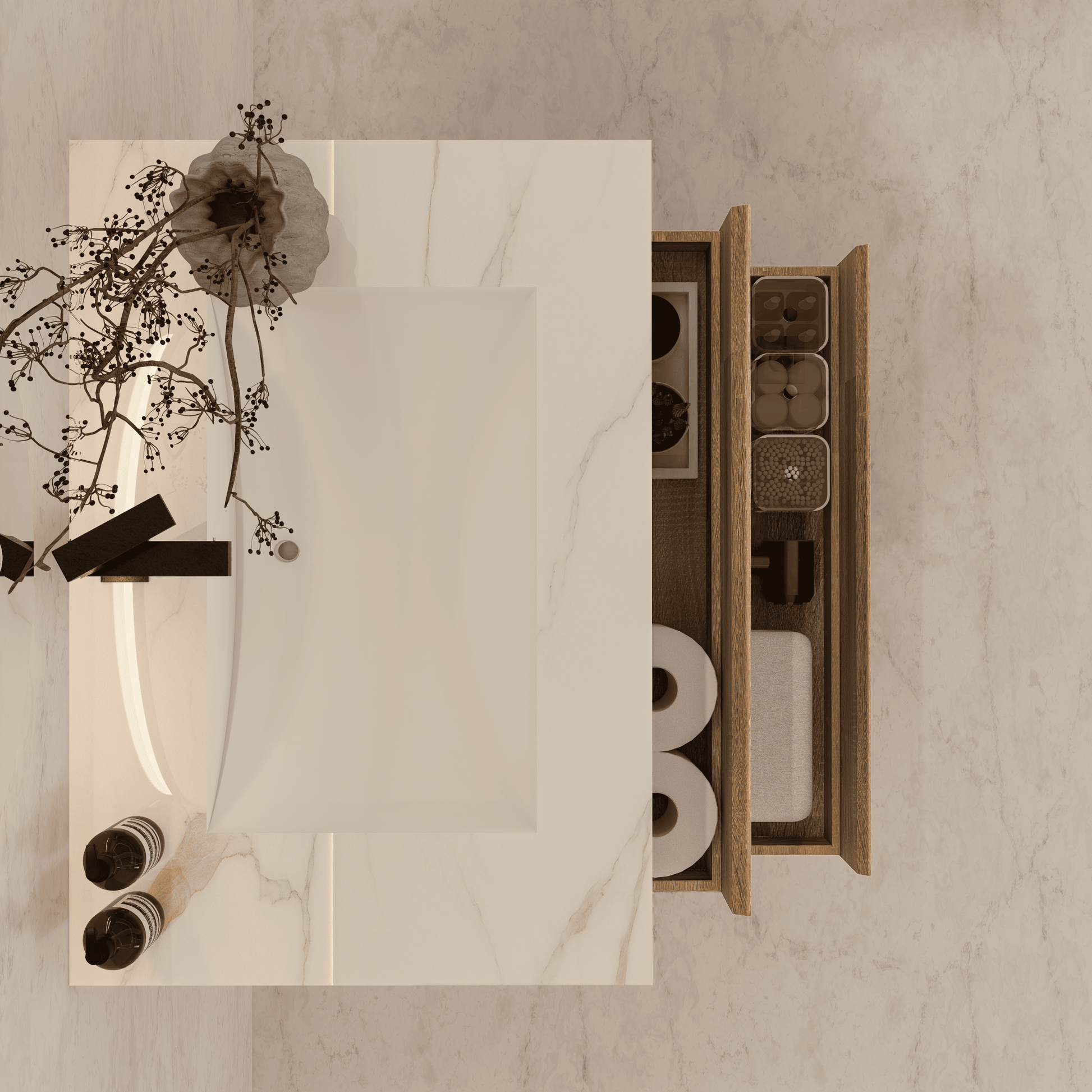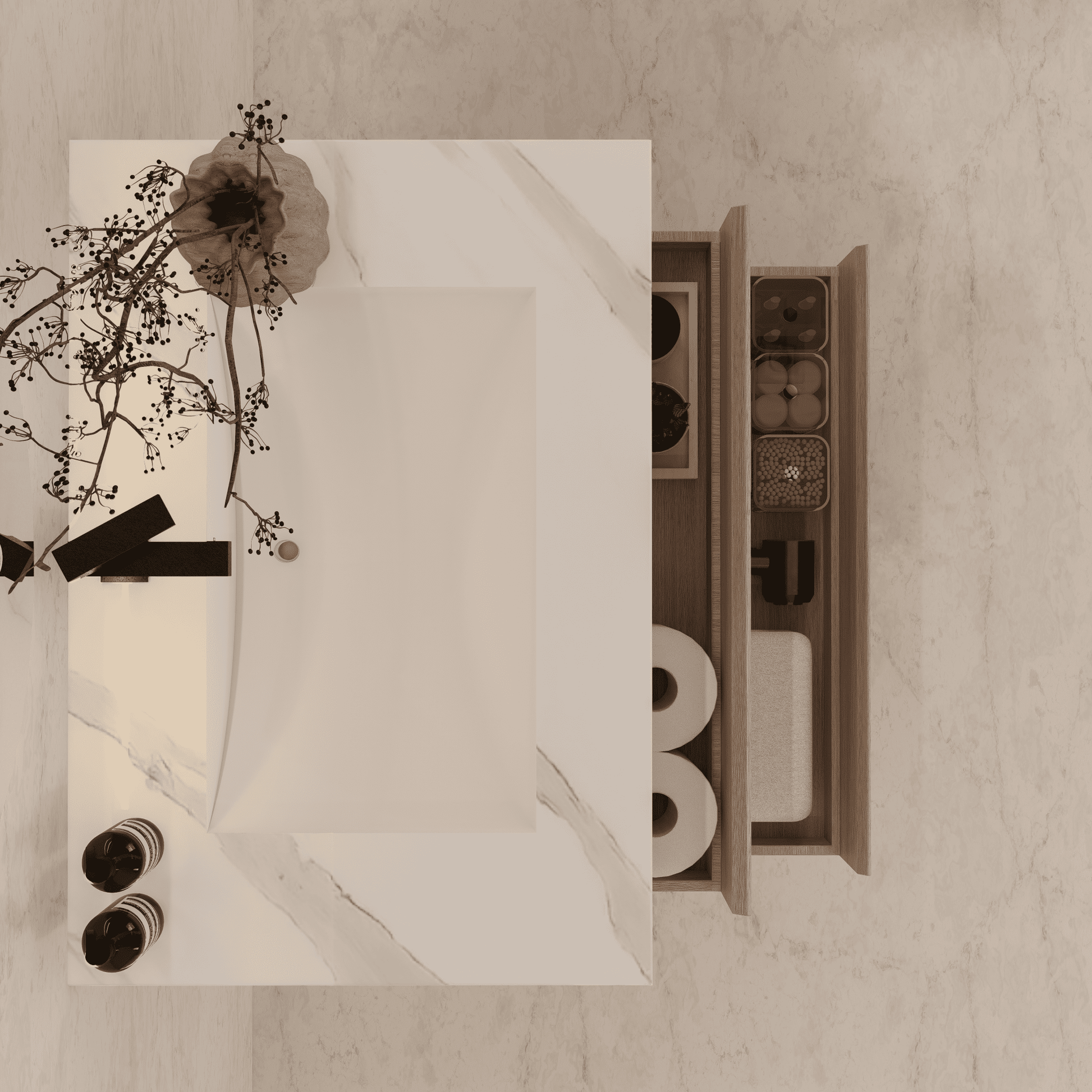 Material: Sintered stone countertop with seamless