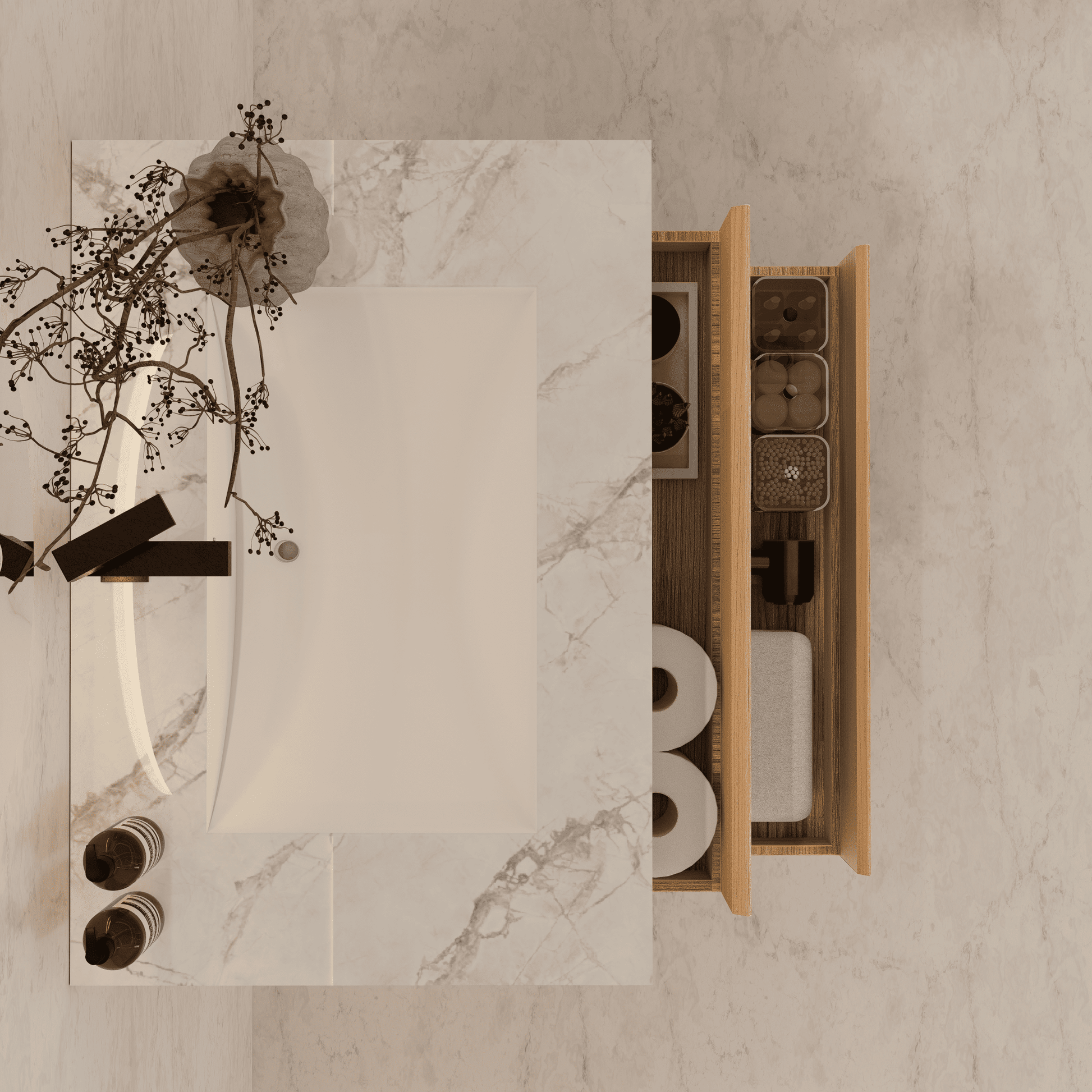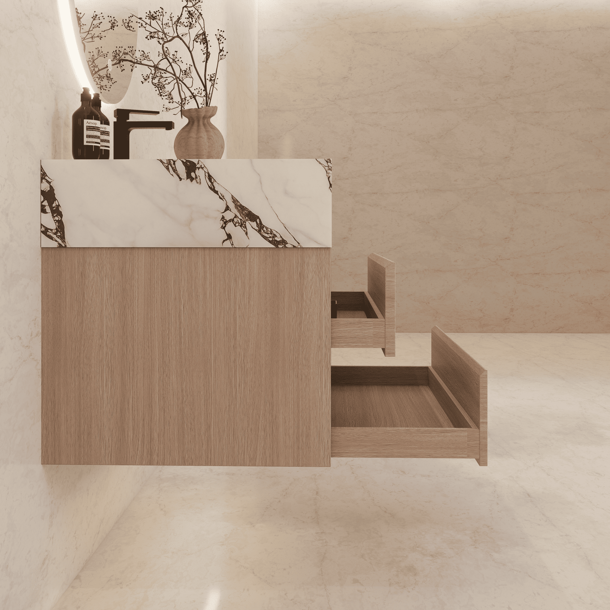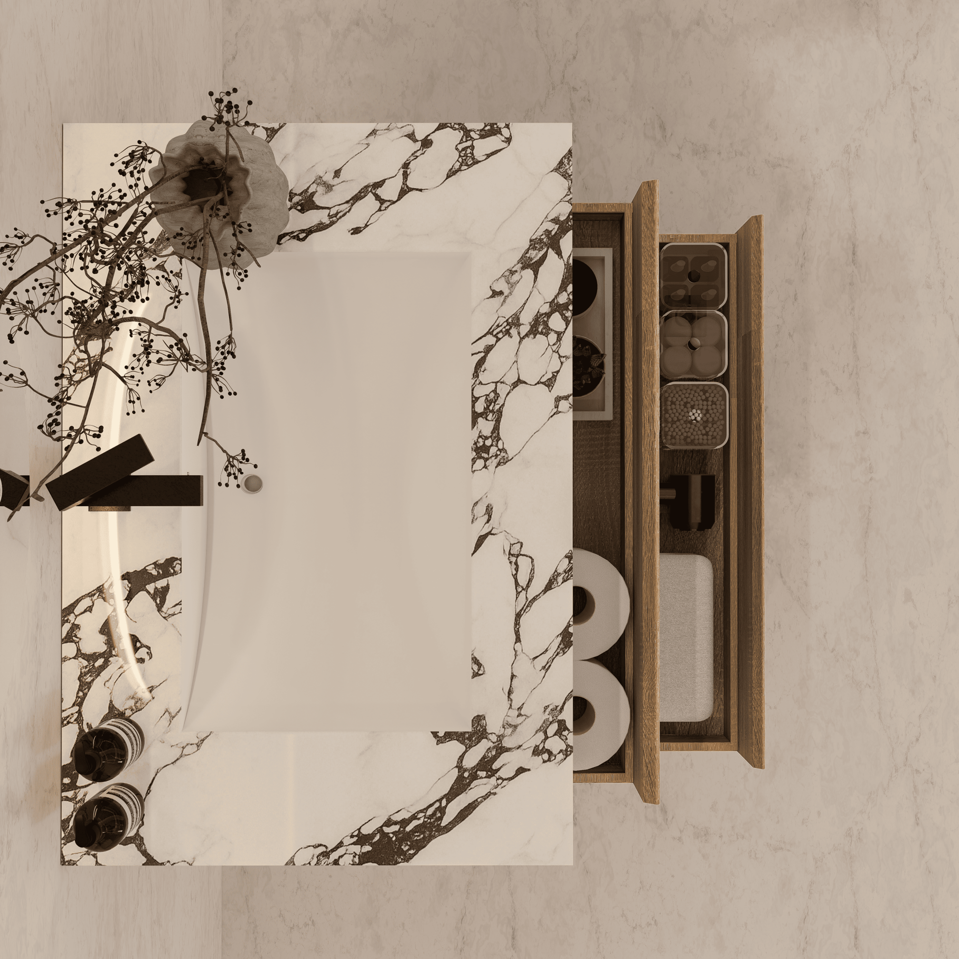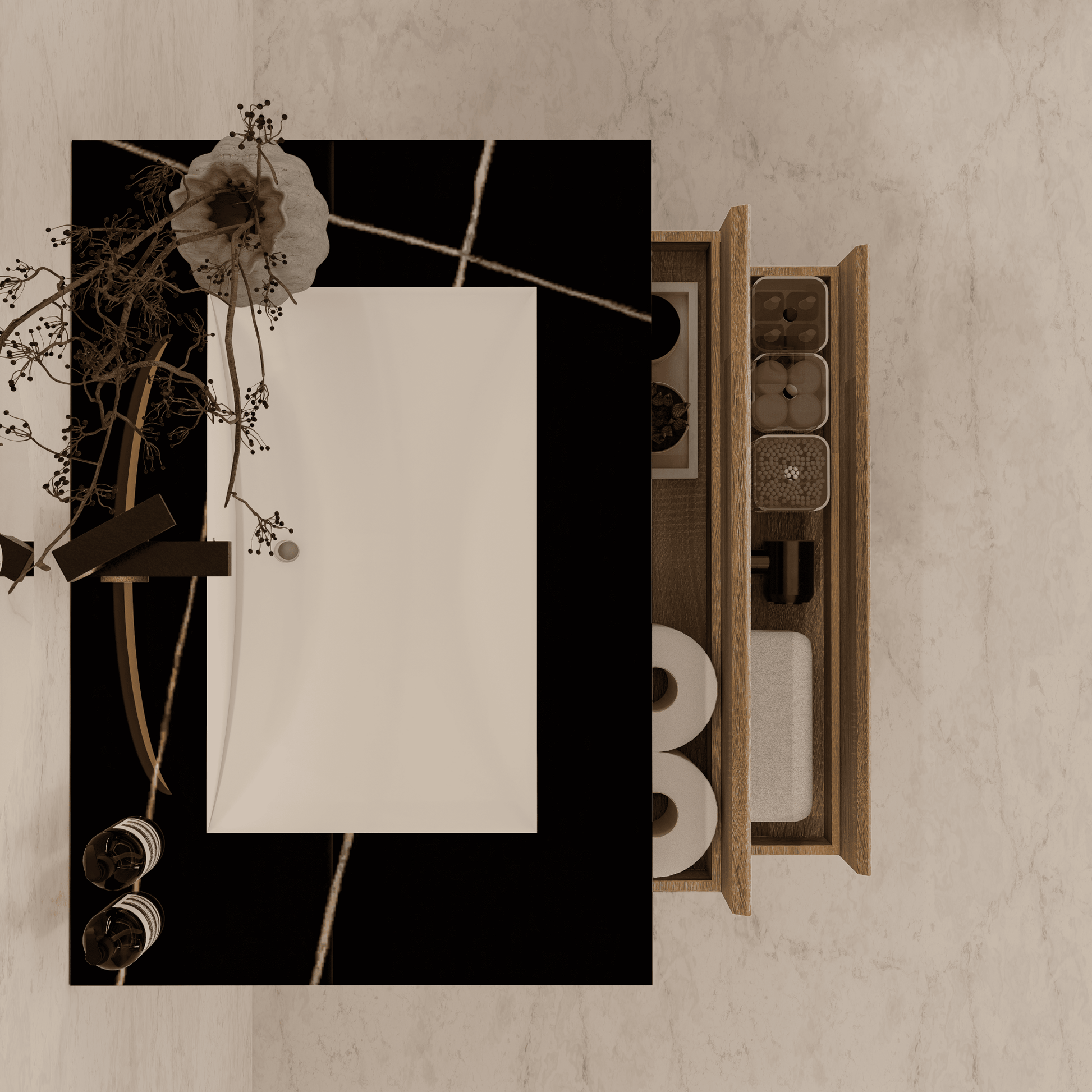 Material: Sintered stone countertop with seamless