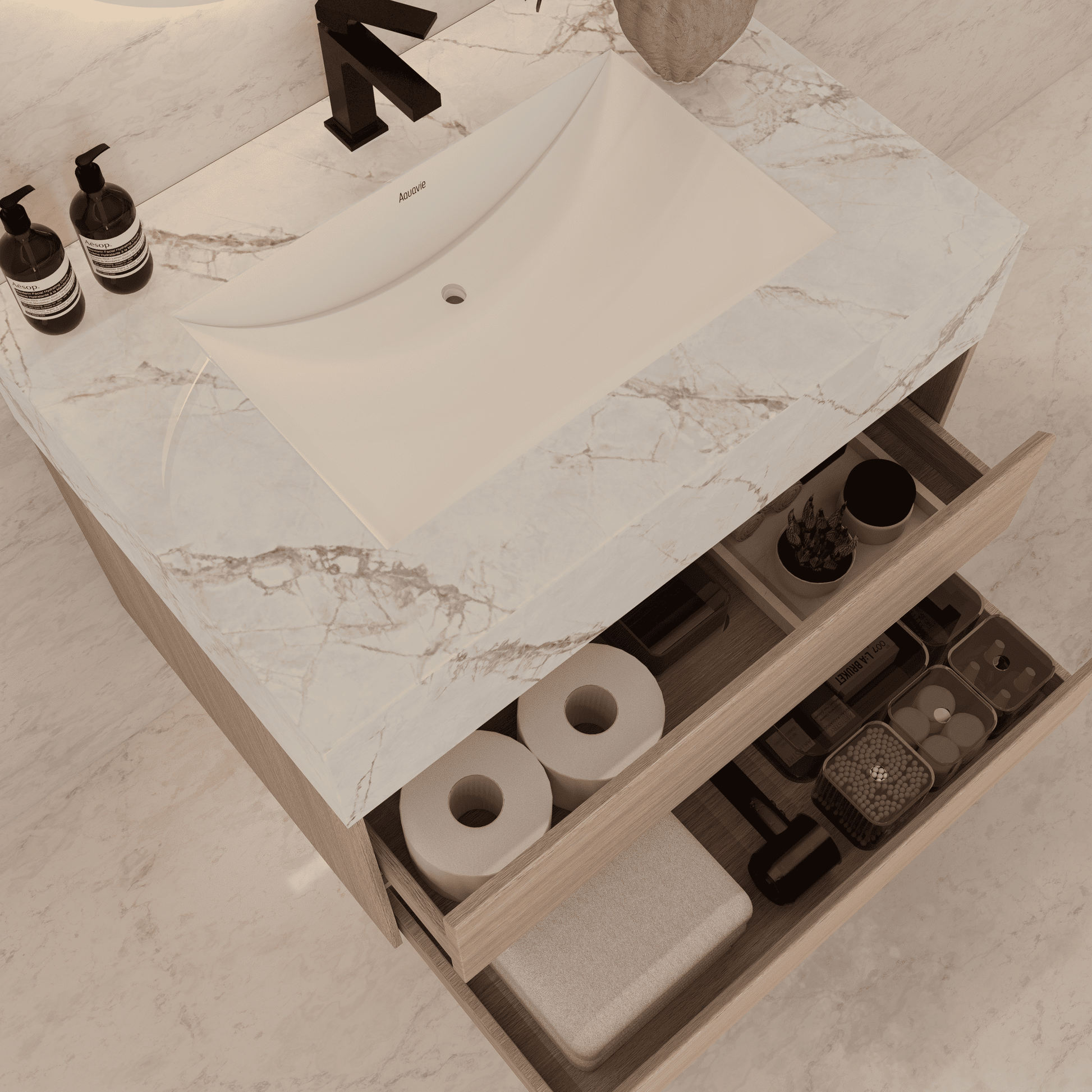 -Pre-installed Blum soft-close drawer hardware