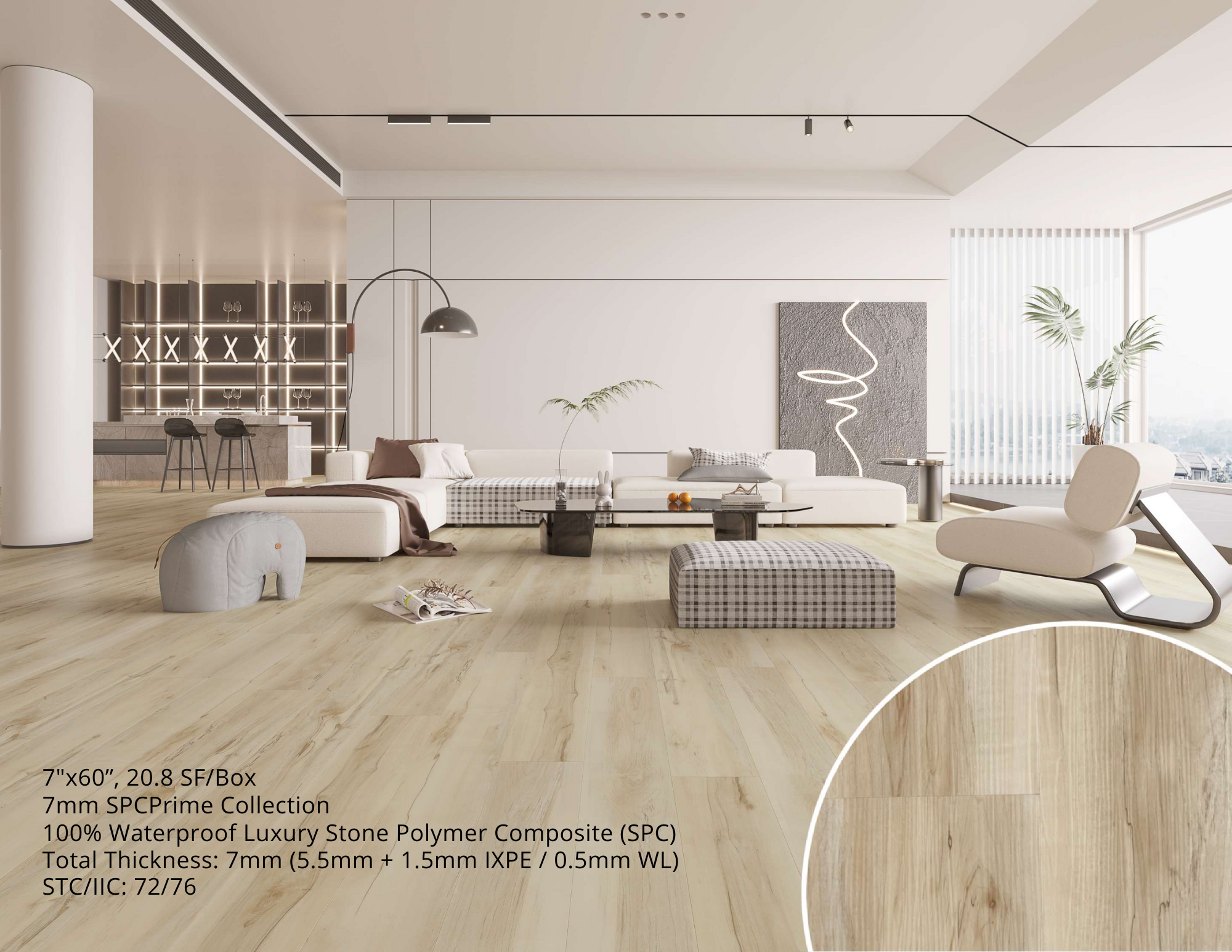 7mm SPC Waterproof Vinyl Flooring - 7" x 60" x 7mm